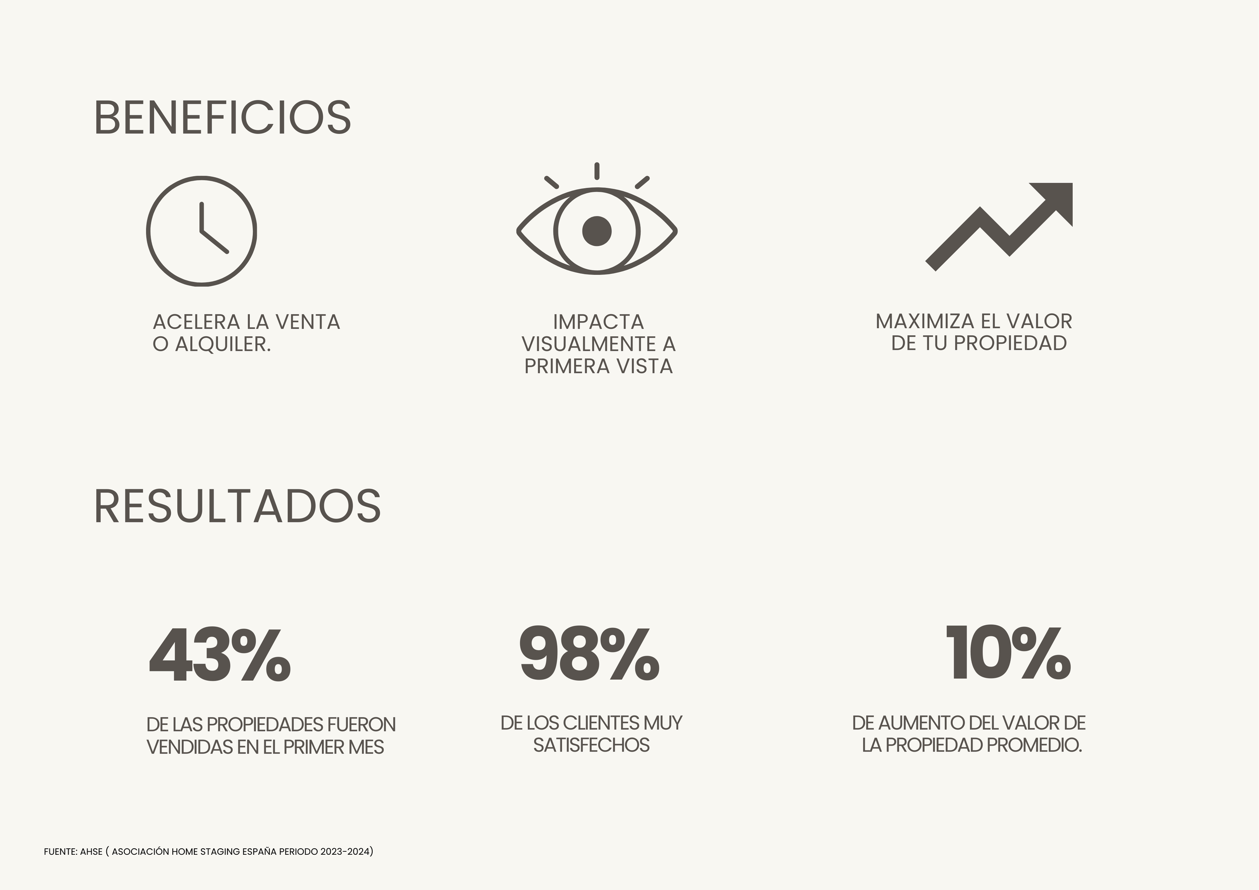 Una propiedad bien presentada se vende o alquila mucho más rápido. Según diversas investigaciones, el Home Staging puede reducir el tiempo de comercialización hasta en un 50%, lo que representa un ahorro significativo en costos de mantenimiento y otros gastos asociados a la propiedad.